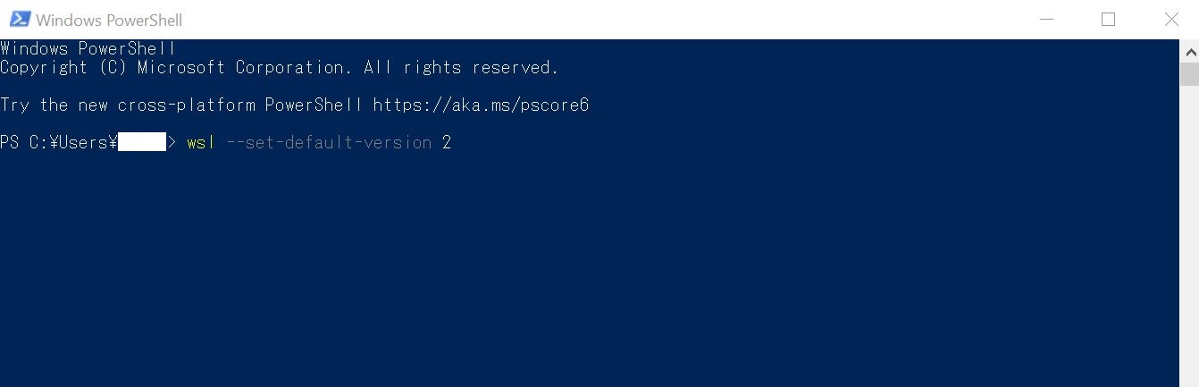 ⑤最後に、WSLのバージョンを2に変更するため、Powershellで